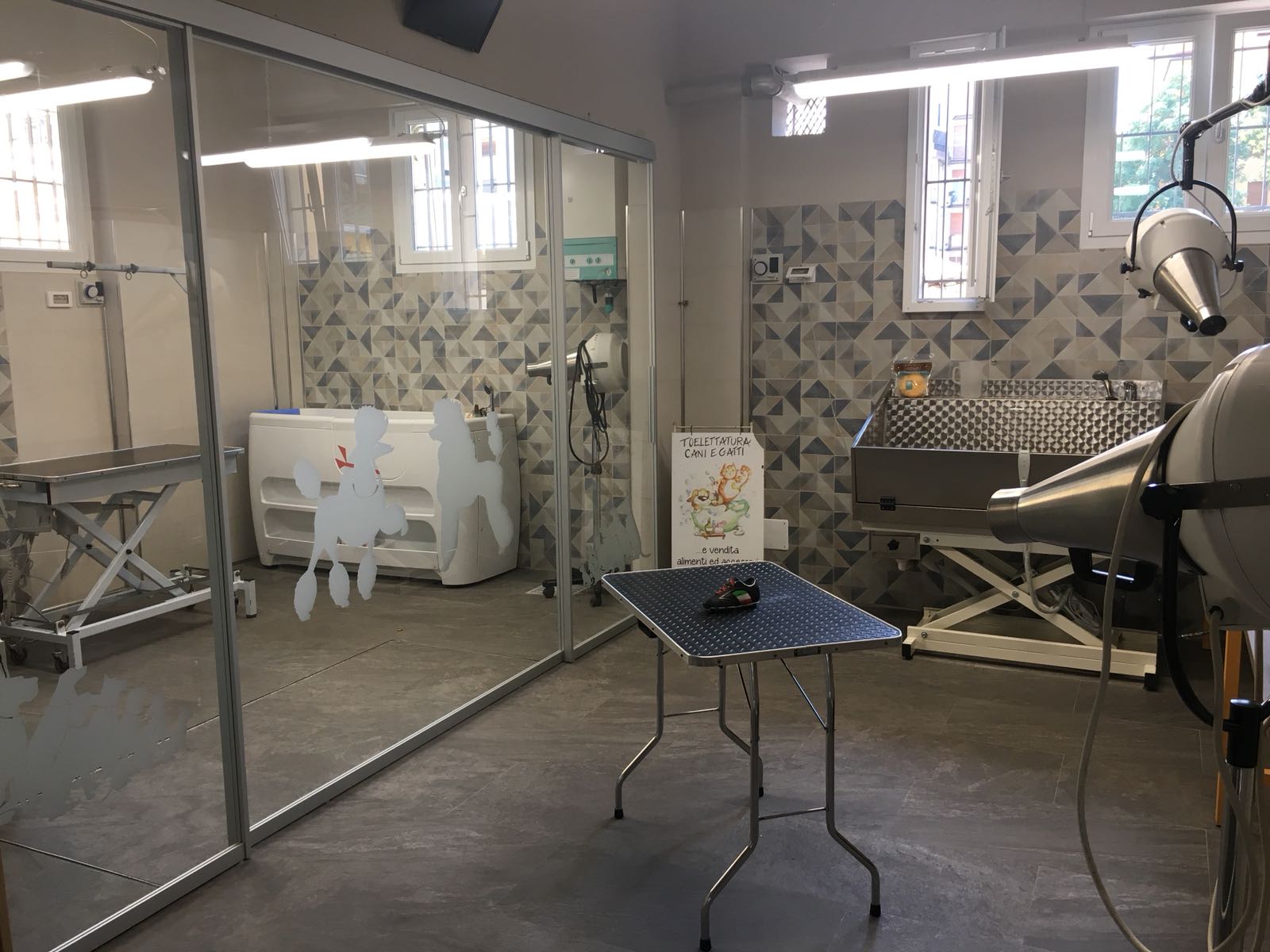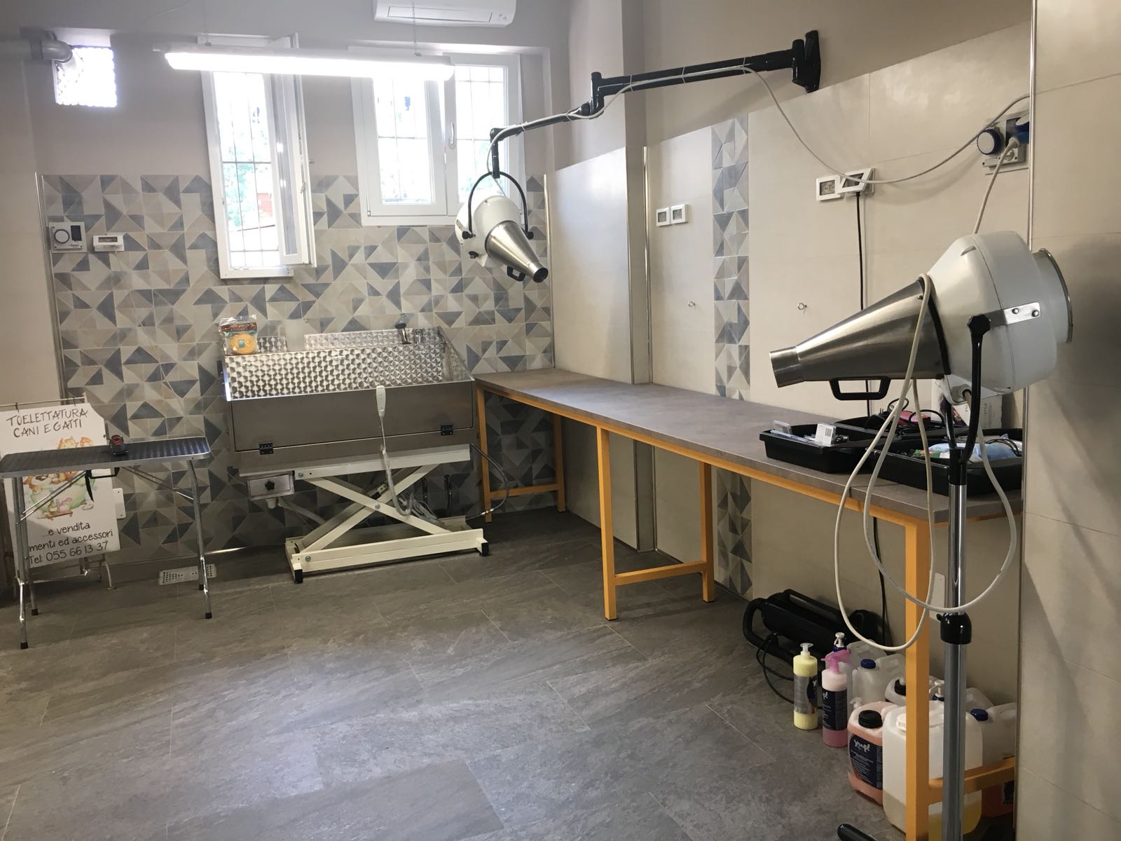 Se cercate un posto dove prendervi cura del vostro amico a quattro zampe, che sia un cane o un gatto, da Diamoci La Zampa a Firenze troverete dei veri professionisti della toelettatura per dare un nuovo look ai vostri piccoli di casa. In più troverete un ampio assortimento di prodotti e accessori per la toelettatura fai da te. Acquistate da noi tutti gli alimenti, da quelli secchi a quelli umidi sia per cani che per gatti, con una gamma di cibi a base di erbe officinali, biologici e ipoallergenici se il vostro animale dovesse avere esigenze particolari. Siamo attrezzati con una vasca con apertura laterale per la toelettatura, che permette l'accesso e il lavaggio di cani di grossa taglia o con problemi di deambulazione. I soffiatori e gli asciugatori sono di alto livello tecnico e insonorizzati per ridurre lo stress del vostro animale. E non dovrete preoccuparvi per la sua pelle: utilizziamo i migliori marchi di shampoo e balsamo, neutri e antiallergici, dopo i quali Simone si occuperà di rendere bellissimo il pelo del vostro amico, eseguendo tutti i tipi di taglio, anche a forbice per peli lunghi, corti e crespi.
